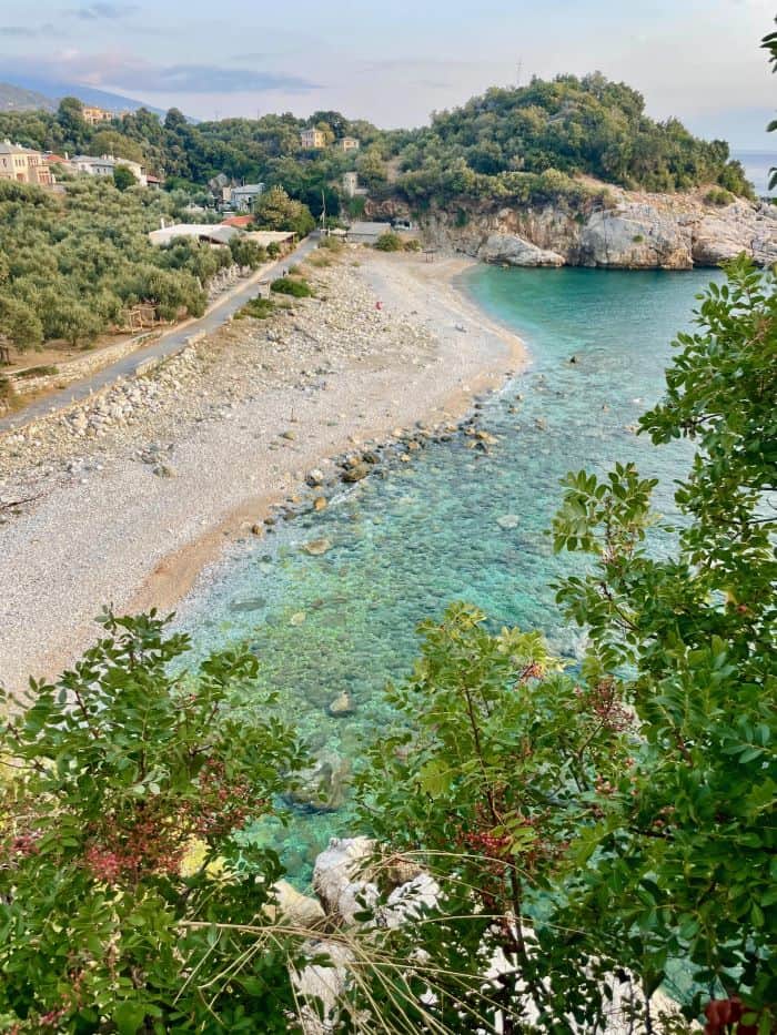 In Damouchari itself, there is a short hike that takes you over a creek and up to a lookout at the south end end of the beach. It takes about 20 minutes to reach the lookout or you can continue, almost indefinitely.