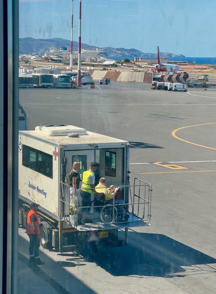Heraklion Airport – wheelchairs go in the catering cart
